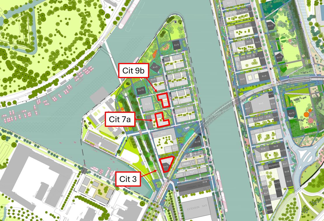 - Les ilots CIT 7A et CIT 9B seront eux en cœur de quartier, à une échelle plus résidentielle, avec respectivement un projet de 25 logements et un de 22 logements avec un rez-de-chaussée actif de 100m².