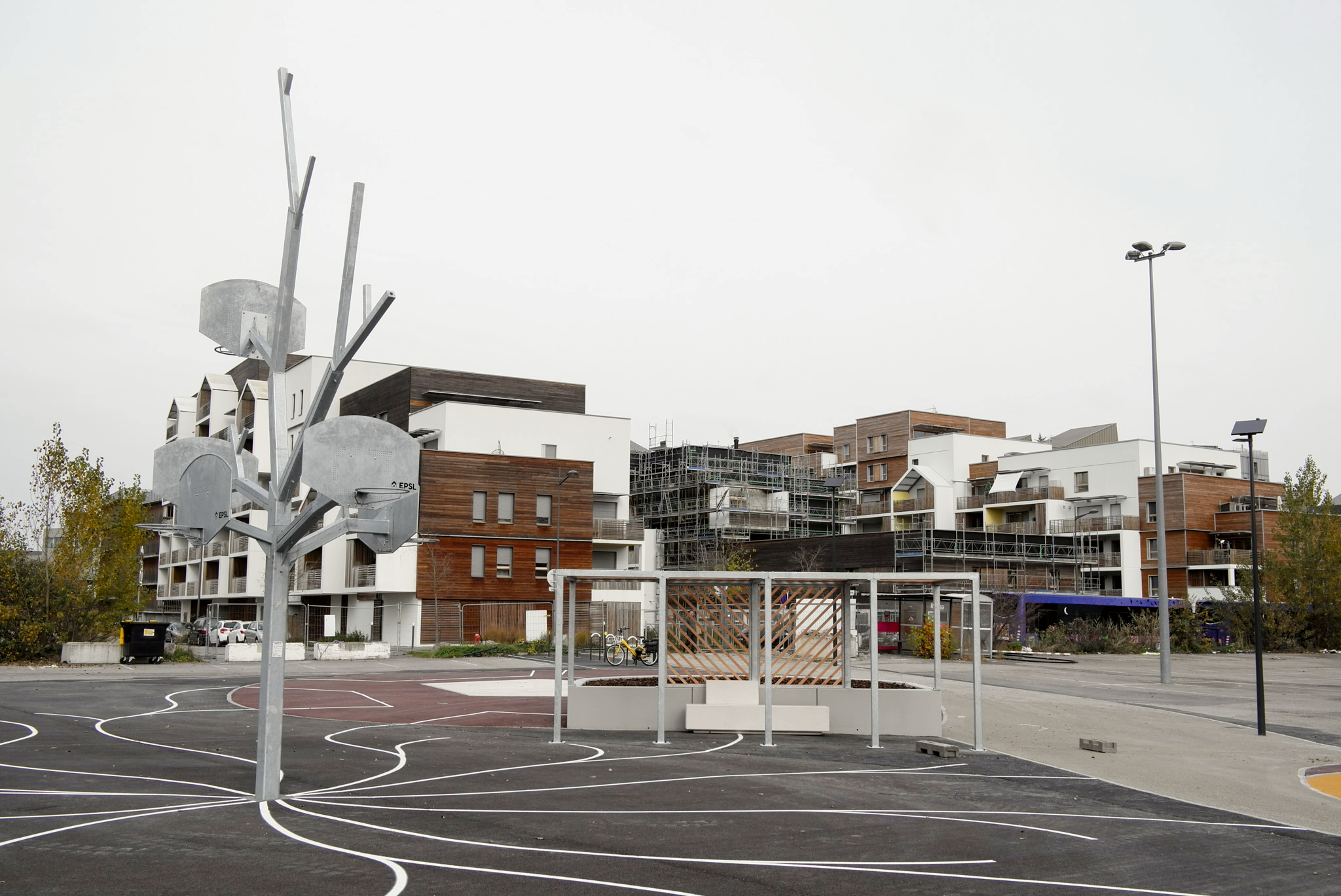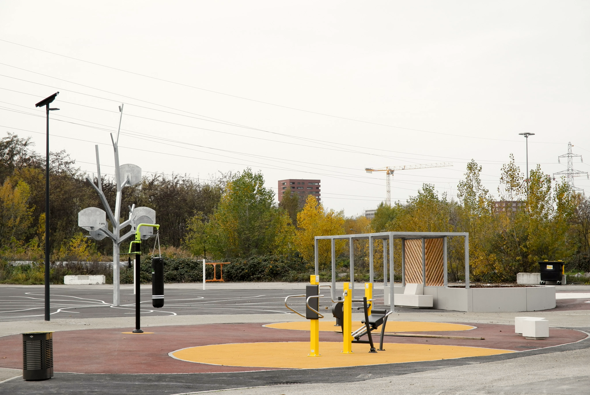 - Un terrain multisports (futsal et basket 3×3) reprenant les installations du Hat Trick (le city-stade qui était installé rue de la digue du Rhin)*,